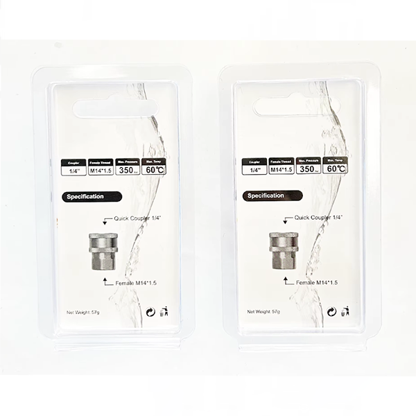 De specifikke produktspecifikationer for dette produkt er som følger. Den ene ende er Udvendig gevind M14×1,5, med en diameter på 12,4 mm, og den anden ende er 1/4 kobling, med en diameter på 12 mm. Størrelsen på gevindet er strengt kontrolleret, som nøjagtigt kan tilpasse sig det relevante rengøringsudstyr for at sikre stabil tætning under tilslutning. Materialet i 1/4 tommer Two Touch Brass Quick Coupler er messing. Messingmaterialet har god korrosionsbestandighed og kan være stabilt i et fugtigt arbejdsmiljø i lang tid. Det er ikke let at forårsage kemiske reaktioner, hvilket påvirker den stabile forbindelse. Samtidig har messingmaterialet også en vis styrke, så i lyset af påvirkningen af højtryksvandstrøm kan det også have en vis trykmodstand, som ikke er let at bryde, hvilket påvirker den samlede tætning. Two Touch-strukturen af selve produktet gør installationen og demonteringsprocessen mere bekvem. Så længe du sigter den del, der skal forbindes med stikket, og trykker let på det, kan forbindelsen fuldføres. Ved adskillelse kan den omvendte operation fuldføre adskillelsesarbejdet. Hele processen behøver ikke at blive assisteret af komplekse værktøjer, og det tager meget lidt tid. , hvilket i høj grad forbedrer arbejdseffektiviteten, og det begrænser ikke antallet af brugere, og ikke-professionelle kan også nemt komme i gang.