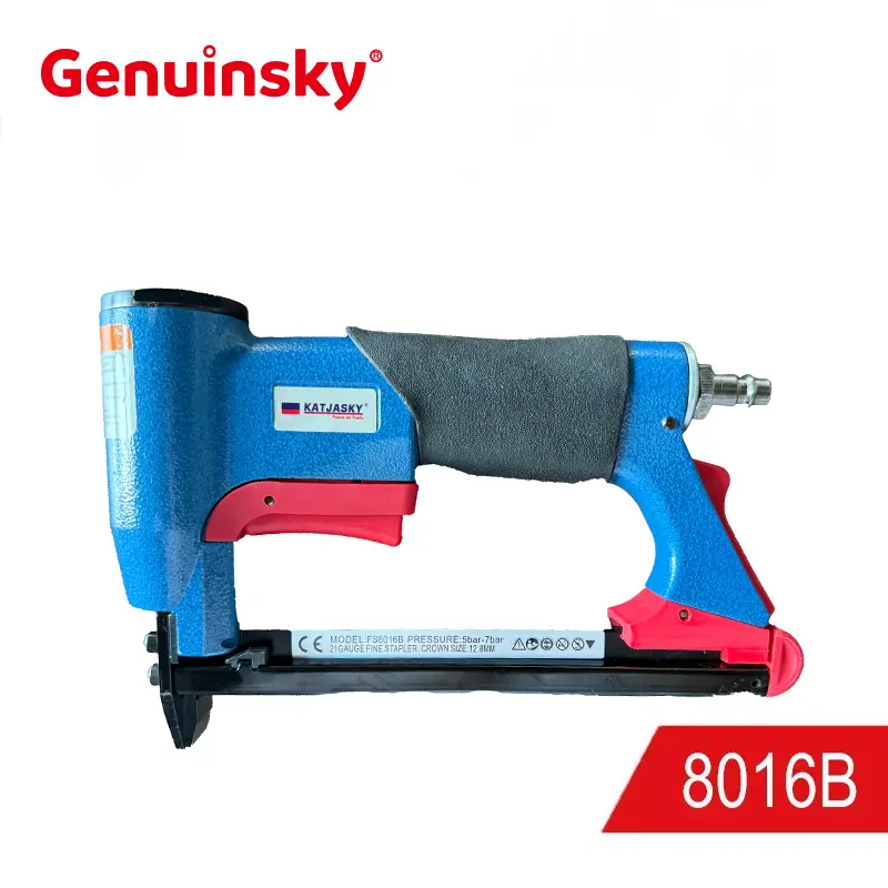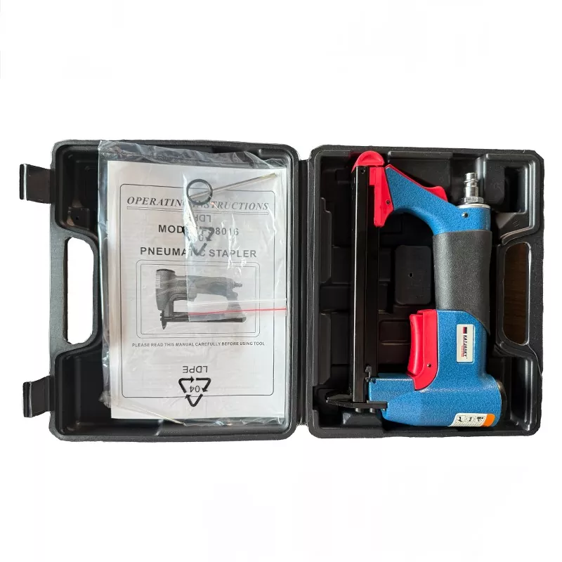 8016b Air Fine Crown Stapler bruges til at fikse U-formede negle eller dør negle til overfladen af materialer gennem pneumatiske anordninger såsom luftkompressorer. Det bruges hovedsageligt til forarbejdning og fremstilling af sofa -stoffer eller lædermaterialer og til hurtig batchbehandling af materiale splejsning. Det er et vigtigt værktøj til læderbehandlingsfabrikker og møbelfabrikker.