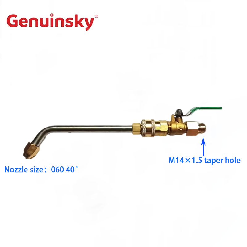 Genuinsky -mærke bøjet dyse med 1/4 tommer ventil er dedikeret til ren vask af aircondition, selve produktet bøjet 60 grader, outl et hul dia.060 40 grad.