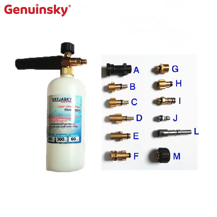 Genuinsky Brand Copper Car Washer Foam Lance, som kan tilpasses Karcher Nilfisk Lavor Bosch BD Washer Foam Generator SN OW Bubble Lance Foamer. Ningbo Genuinsky Company er et firma, der specialiserer sig i produktion af rengøringstilbehør. Virksomheden integrerer produktion, udvikling og salg, med fremragende kvalitet, præferentiel pris og fremragende eftersalgsservice, så brugerne kan købe med mere ro i sindet.