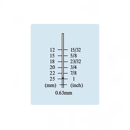 Negle- eller pinstørrelsen til MP625A Air Micro Pinner er lille og tynd, størrelse 12-25 mm (15/32 til 1 tommer), GA23, DIA. 0,63 mm.