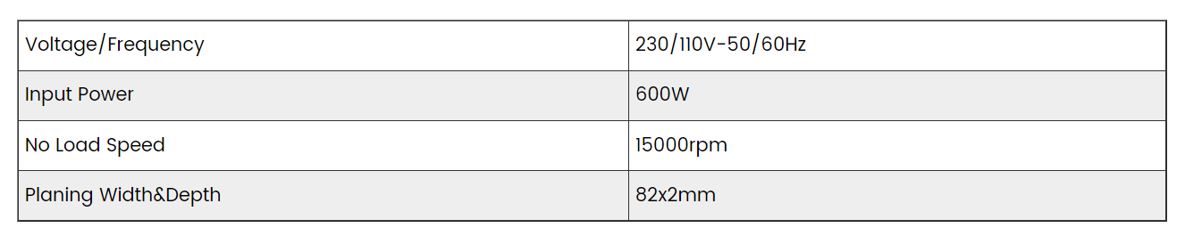 De82x2mm elektrisk høvlemaskinelanceret af Genuinsky er en effektiv assistent inden for træbearbejdningsproduktion og boligindretning. Værktøjer, der arbejder inden for disse områder, kræver fremragende ydeevne og kvalitet. Den elektriske høvlemaskine har 600 W stærk effekt, 15000 rpm ubelastet hastighed, 82×2 mm høvlespecifikationer og 230/110V-50/60Hz bred spænding. Disse produkter er Det gør det til et kerneværktøj inden fortræbearbejdning.