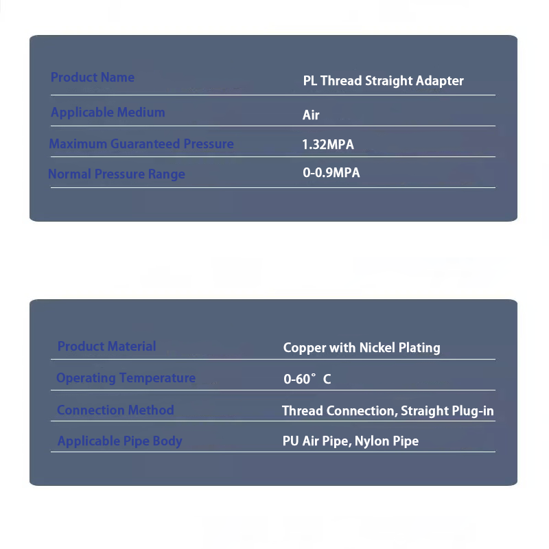 PL Thread Straight Adapter og røret kan endda rotere 360° frit efter installation, hvilket betyder, at det kan bryde begrænsningen af den traditionelle ledvinkelfiksering. Det kan tilpasse sig den komplekse pipeline-trend, og de anvendelige scenarier for produktet er mere omfattende. Samtidig har produktet tolerancen til at tilpasse sig forskellige scenarier. For eksempel kan det også opretholde en stabil ydeevne i højtemperaturproduktionslinjen, fordi toleranceområdet for selve produktet er i temperaturområdet 0-60°C. Derudover kan det maksimale garanterede tryk nå 1,32 MPa, og det normale arbejdstrykområde er 0-0,9 MPa, hvilket fuldt ud kan dække den stabile drift af udstyr, der kræver højtryksarbejdsforhold såsom pneumatiske værktøjer og automatiserede cylindre.