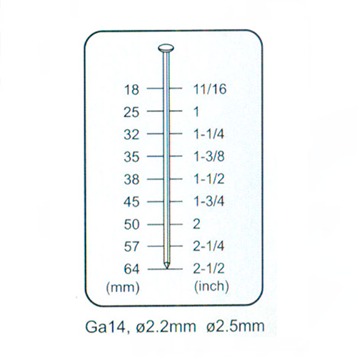 ST -64 stålrække negle er lavet af medium kulstofstål med en neglestangdiameter på 2,2 mm og et længdeområde 18 mm - 64 mm. Den ene ende har et fladt hoved, og den anden ende er skarp. Dette design er velegnet til fiksering af dekorative materialer, behandling af træemballage og andre scenarier. Til praktisk brug kan ST-64 stål negle spikres direkte i væggen, hvilket eliminerer det traditionelle trin med boringshuller med en bor og derefter spikrer træsiler, hvilket resulterer i højere byggeffektivitet. Når det bruges med et tryk på 4-8 bar, er effekten bedre. Når du vælger neglelængden, skal neglelængden til fastgørelse af objektet være 1,5-2,5 cm længere end det hængende objekt, hvilket er mere sikkert og mindre sandsynligt at skade væggen.